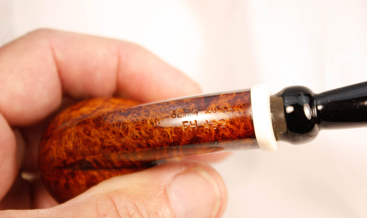 Mediterranean Plateau Briar with imitation ivory endcap, hand cut German Ebonite stemĀ with a Delrin tenon